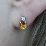 2 Oval Citrine 6x4mm AAA Rated with 2 Round Aquamarine 2mm AAA Rated stones are set in Sterling Silver posts